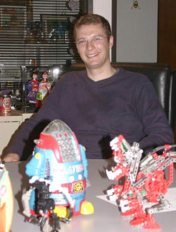 Bob Thompson con BIONICLE y otros juguetes en una entrevista de 2003 en BZPower.