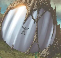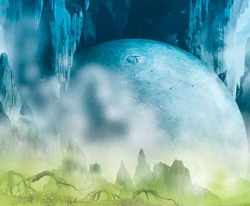 "Una gran estructura esférica, medio enterrada en la punta de una estalactita caída, y parecía haber estado aquí siempre y era al mismo tiempo totalmente ajena a este lugar."