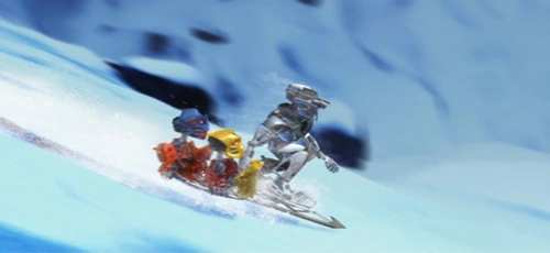 En La Máscara de la Luz, Takua y Jaller usaron el Escudo de Hielo de Kopaka como tabla de nieve para tratar de escapar de los Rahkshi durante su búsqueda del séptimo Toa.