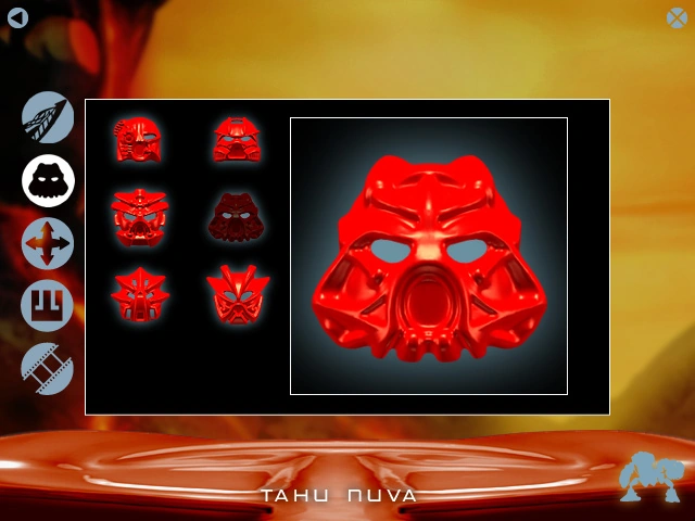 En la pantalla principal, una vez que al hacer clic en el Toa Nuva, el narrador describe sus habilidades y poderes. Cinco botones se pueden ver en el lado izquierdo de la pantalla.