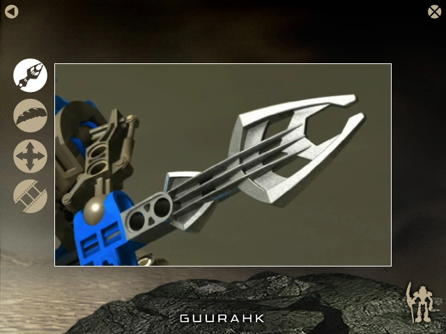 Esta pantalla permite al usuario hacer clic y girar en 3D al Rahkshi en forma conjunto, permitiendo al usuario ver todos los ángulos del conjunto.