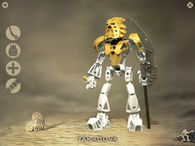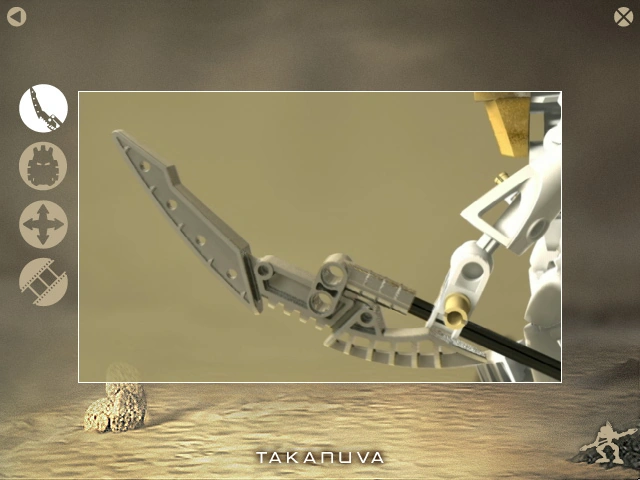 En la pantalla principal, una vez que al hacer clic en Takanuva, el narrador describe sus habilidades y poderes. Cuatro botones se pueden ver en el lado izquierdo de la pantalla.
