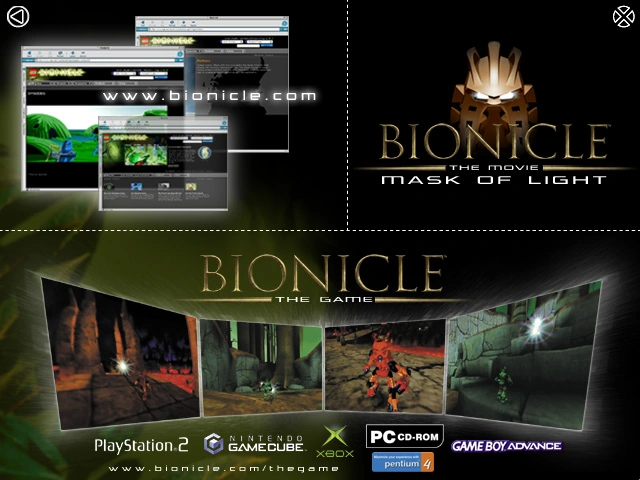 El segundo botón mostraría tres enlaces diferentes para el Internet - uno para BIONICLE.com, uno para la página web oficial de la película, y uno a la página web oficial del juego.