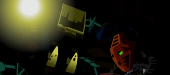 "Tan pronto como él devolvió la Kanohi a su rostro, la luz se apagó. "Eso fue extraño", dijo, su curiosidad de inventor le picó."