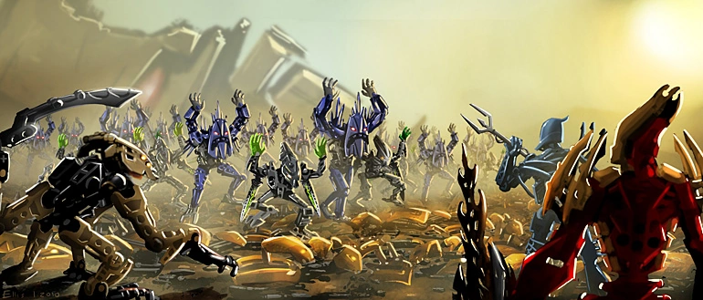 Kun Rahkshi ja Makuta on voitettu, katson kuinka jäljellä olevat Pirakat ja Skrallit antautuvat. Vanhasta robottikehostani kömpivät Matoranit liittyvät uutta kotia etsiessään Agoreihin, Toiin ja Glatorian-sotureihin. Niillä on paljon opittavaa toisiltaan ja näen jo, miten ne muodostavat ryhmiä toistensa auttamiseksi.