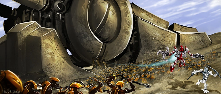 Makuta vaistoaa aikeeni ja tiedän, että hän tuo taistelun minun luokseni. Minun on valmistauduttava nopeasti. Ensinnäkin minun on lähetettävä pienet olennot jalkojeni juuresta turvaan. Sen jälkeen minun on täytettävä tehtäväni ja yhdistettävä kolme maailmaa jälleen yhdeksi. Voin vain toivoa, että tämä robottihahmo ja sen voimanlähde ovat tehtävän mittaiset.