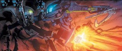Toa Mahri toczący bój z Rahkshi w Po-Metru