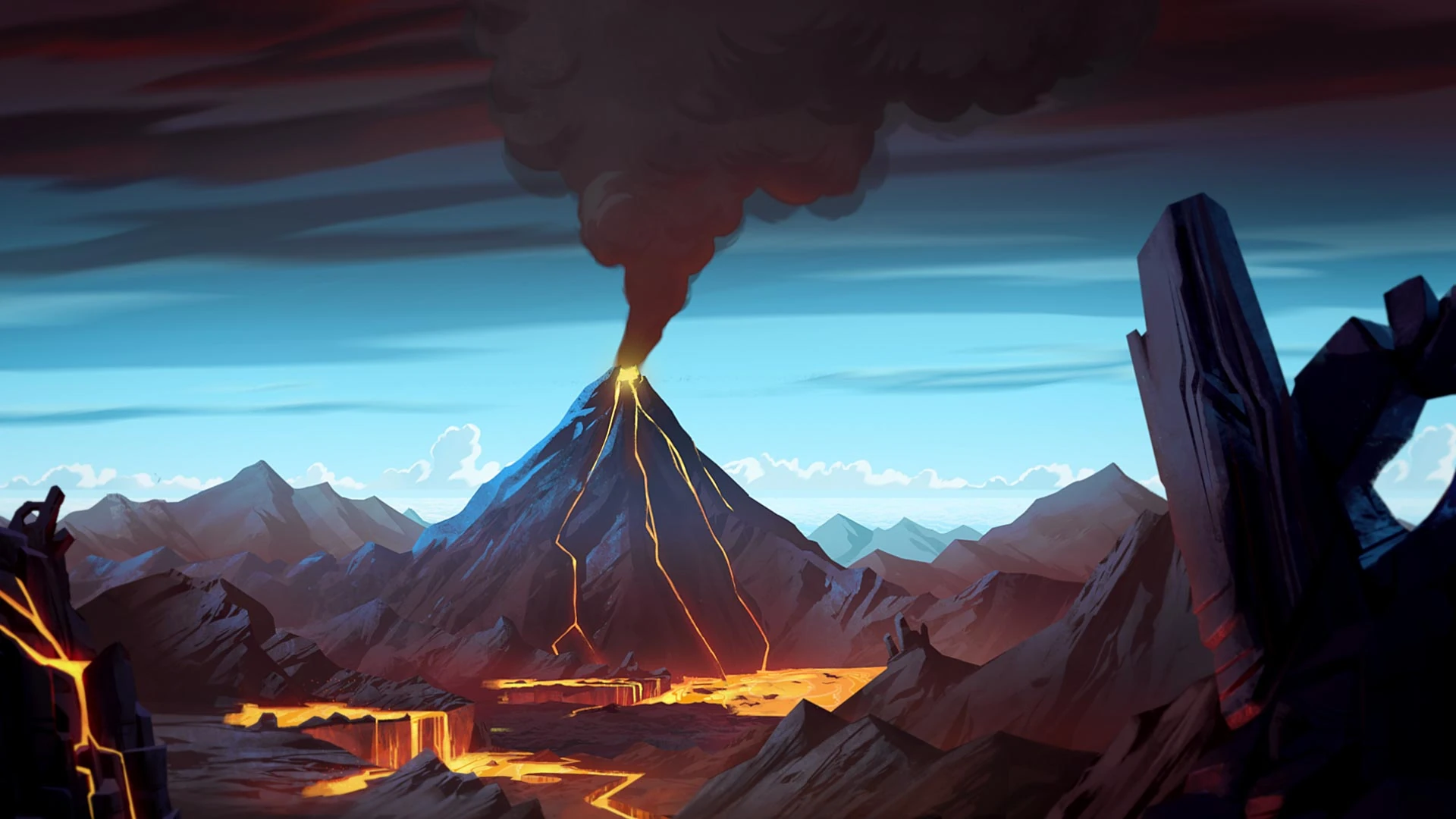 - "Najniebezpieczniejsza część wyspy, obejmuje trzy największe wulkany Okoto. Rzeki lawy spływają z gór, tworząc jeziora nim wpadną do morza. Obrońcy nigdy nie wiedzą, kiedy nastąpi kolejna erupcja."
