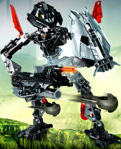 Toa Nuva Onua Mistika noszący Tarczę na lewym ramieniu