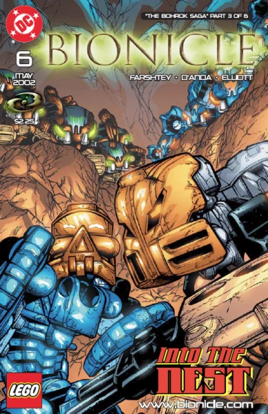 Into the Nest was the sixth issue of the original BIONICLE comic series and the third part of The Bohrok Saga sub-series. It was initially mailed with the May/June 2002 edition of LEGO Mania Magazine, and was later collected in BIONICLE: Volume 1 and BIONICLE 1: Rise of the Toa Nuva. This comic saw the Toa venture underground in order to confront the Bohrok swarms directly.