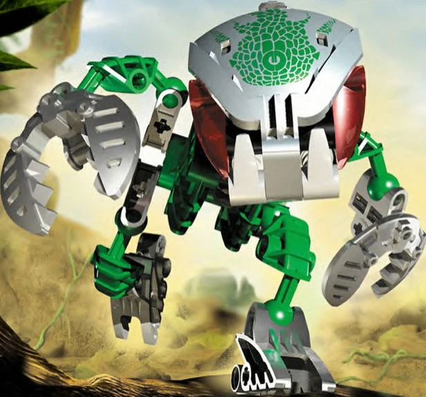 Lehvak-Kal was the fastest and most unpredictable Bohrok-Kal. It made full use of the terrain, and could disappear into the jungle in an instant. Its Vacuum Shield gave it two powerful modes of defense, and there was no way for one to know which it would choose.